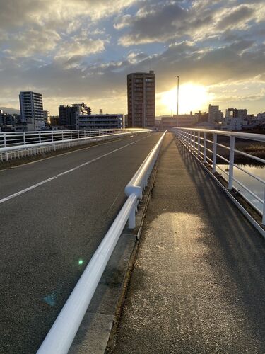 12月31日(木)、晴れ時々雪。天気ニュースに散々「凍結に注意!」と煽られまくったのでお節料理の引取りの足は公共交通機関を選択し年末ダイヤの始発で出発するも太田川放水路の橋の上は全く凍結していないのであった…。 歩道の一部のみ凍結。 というわけで…
