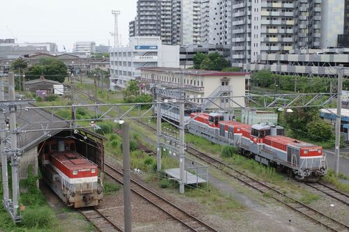 関東方面に出張に行きました。 武蔵小杉駅周辺。タワマン乱立。大都会だなぁ。 翌日、出張先の新川崎駅に降り立つとなんだか様々な貨物列車が。仕事帰りに撮影してきました。 新川崎駅ホームから。桃太郎! DE系ディーゼル機関車って最近あまり見かけない気…